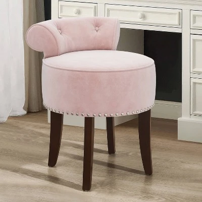 - Product Name: Lena Backless Wood and Upholstered Vanity Stool with Nail Head Detailing