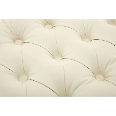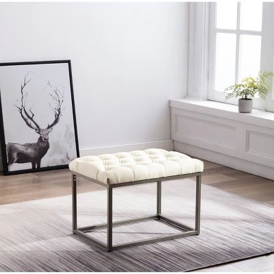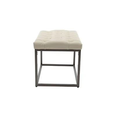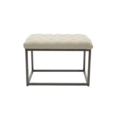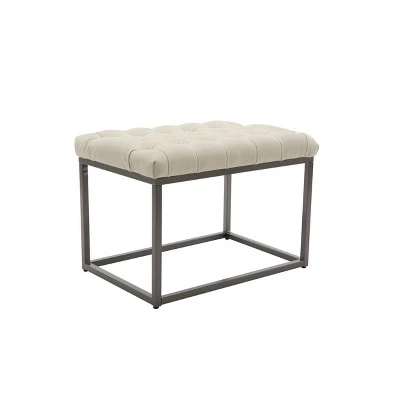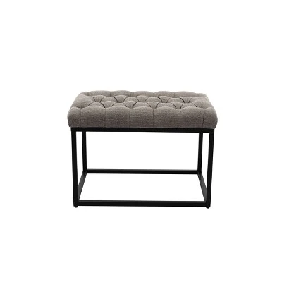 Bring current and classic style to any room with this industrial metal base ottoman with button tufting upholstered top. This 24″ rectangle ottoman will be a conversation piece and an ideal seating or dĂ©cor solution in your living room, entryway, or bedroom. Try two together to make a more impactful statement. Designed to work with a range of existing interior styles and an easy way to give any room an update at a good value.