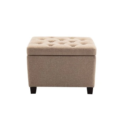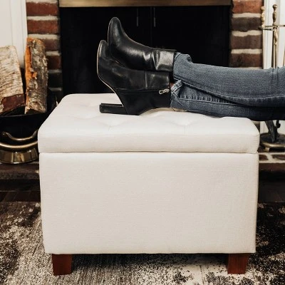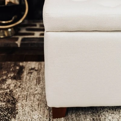 This classic large 24″ rectangle storage ottoman with a hinged lid will have lasting function and be a timeless style addition to your home. Designed to be an easy storage solution in your bedroom, living room, or entryway – use for storing blankets, shoes, pillows, or remotes. Offered in classic fabrics that will be an easy compliment to any interior style. Easy to care for and maintain.