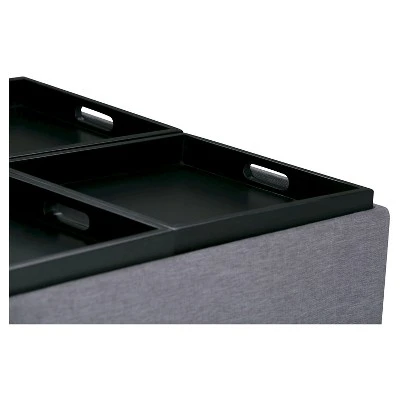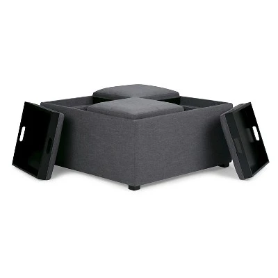 Having purchased your new Sofa and Love Seat, you are looking for a larger square furniture piece to use as a Coffee Table. You want it to be fully functional with plenty of storage. The Franklin Large Square Coffee Table Storage Ottoman is made from durable linen look fabric and is the answer to all your needs. This attractive ottoman is extra strong and durable and features a beautiful stitched exterior and large storage interior. It has four flip over trays for easy entertaining, or eating beside the TV and has an extra large storage compartment to hide away all of your clutter. Whether you are using it as an eating surface, a storage unit or just to put your feet up, the Franklin Coffee Table Ottoman is a great and functional piece of furniture. This ottoman is available in Brown, black, Red and cream PU plus Brown and gray linen look fabric.Efforts are made to reproduce accurate colors, variations in color may occur due to computer monitor and photography.