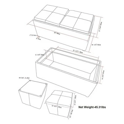 Great things come in small packages. For an amazing solution to your storage, seating and serving needs, look no further than the Franklin 5 Piece Storage Ottoman. The unit is made from durable Faux Leather and comes with two flip over serving trays, two small seating ottomans and one large storage ottoman with lots of storage space. This attractive ottoman is extra strong and sturdy and features a beautiful stitched exterior. Whether you use this ottoman in your entryway, living room, family room, basement or bedroom, it will allow you to hide away all that mess, eat your food and have extra seating. This ottoman is available in Brown, black, red, cream and green PU plus a Brown linen look fabric.Efforts are made to reproduce accurate colors, variations in color may occur due to computer monitor and photography.