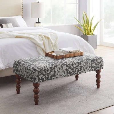 Decorate the entryway or add style to your room with the Claire 40″ Bench – Linon. Made from durable wood with padded seating and cheerful, printed upholstery, this seating bench comes with carved wooden legs and low-seat design. It offers both, style and comfort. Used as a convenient spot by the front door or added to your living room as extra seating space, the printed wooden bench makes a comfy addition to your aesthetic.