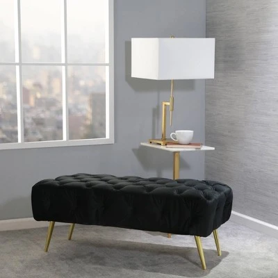 Whether you need a spot to sit as you kick off your shoes in the entryway or you want a perfectly punctuate your bed in the master suite, the bench is the perfect pick. Founded atop four tapered legs finished in gold. The seat up top is velvet upholstery, offering a neutral solid and manufactured wood.