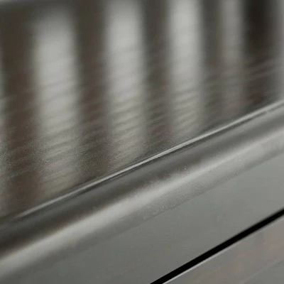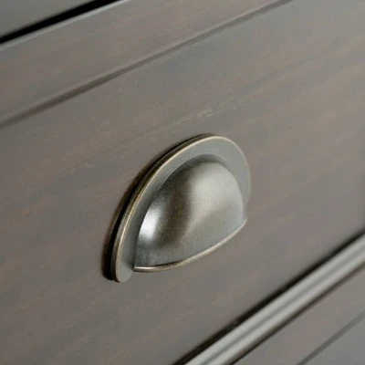 - Features 2 large frame panel drawers with Antique Bronze drawer pulls and metal drawer glides