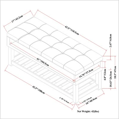 - Dimensions (Overall): 18.5 Inches (H) x 43.5 Inches (W) x 17 Inches (D)