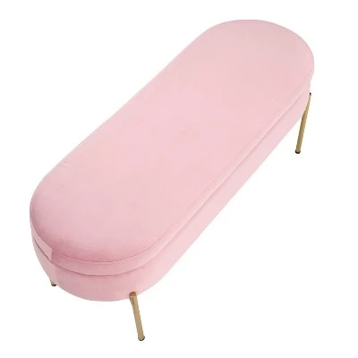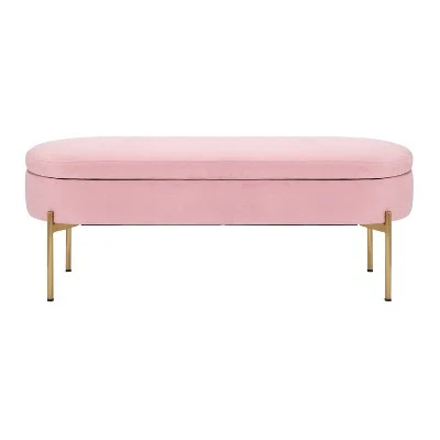 The Chloe Storage Bench by LumiSource provides convenient storage along with a stylish look. Perfect for extra seating, an entryway, or at the foot of a bed, the Chloe Storage Bench features velvet upholstery accented by a luminous gold metal base. Open the flip-top lid to find a roomy storage area where you can conveniently hide magazines, remote controls, and anything else you want to keep out of sight. Available in a variety of colors, choose the one that fits your glam area the best!