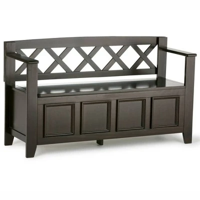 Halifax Solid Wood 48 inch Wide Transitional Entryway Storage Bench. Style includes library framed square front panels and X back and side design. Large, spacious entryway bench seats 2 comfortably. Handcrafted with care using the finest quality solid wood. Efforts are made to reproduce accurate colors, variations in color may occur due to computer monitor and photography. The product is warranted to be free from defects in material and workmanship for a period of (1) year from the date of purchase to the original owner.