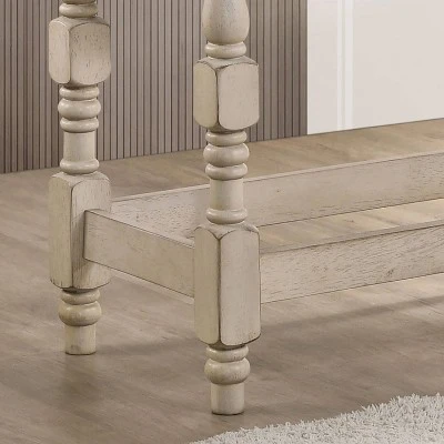 Enhance the look of your dining room or home bar area with this transitional counter height bench. The frame and legs are crafted of rubber wood and MDF, with a large fabric wrapped backless bench-style seat cushion for comfortable seating of up to three people comfortably. Each of the four elegantly turned legs features carved detailing, with support beams that double as footrests.