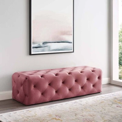 Enliven your decor with Amour. This tufted button entryway bench comes upholstered in soft and durable stain-resistant performance velvet fabric and dense foam padding for a luxurious seating experience. Instantly update your entryway, foyer, hallway, living room with this versatile 60-inch long bench. Bench Weight Capacity: 500 lbs.