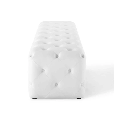 Enliven your decor with Amour. This tufted button entryway bench comes upholstered in smooth Vegan Leather with dense foam padding for a luxurious seating experience. Instantly update your entryway, foyer, hallway, living room with this versatile 72-inch long bench. Bench Weight Capacity: 550 lbs.