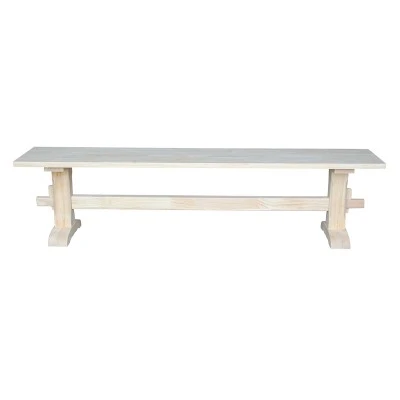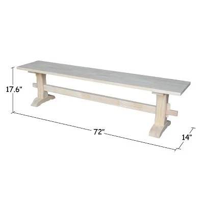 International Concepts home furniture is for those who appreciate high quality, wood furniture with a traditional and elegant look. This bench will beautifully complement any decor in your home. The bench is made of solid hardwood with a butcher block surface. It measures 72″W x 14″D x 17.63″H. It is unfinished, allowing you to match any decor. The bench ships ready to assemble.