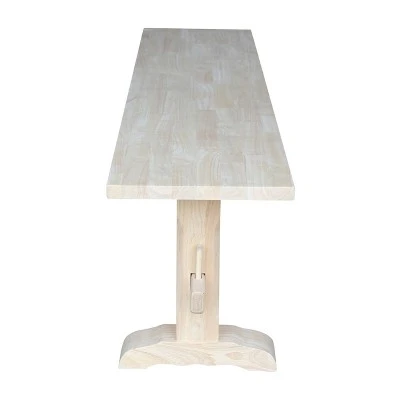 - Trestle style bench with butcher block surface