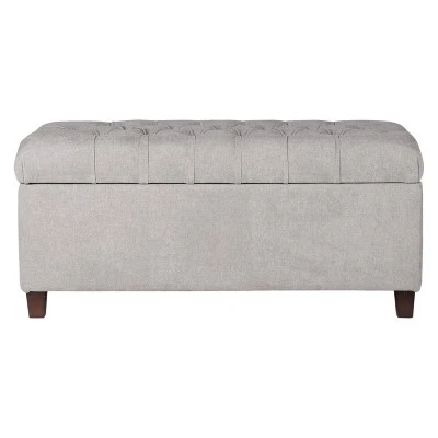 Plush yet practical, this tufted storage bench provides a variety of home décor options. Use it as a coffee table ottoman in a living room to serve guests. Position it in a family room to relax feet on after a long day. Place it as an end of bed bench to hold pillows and blankets. With wood legs, soft textured fabric, and a hinged lid for easy access, this large tufted storage bench is a premium addition for any home. Easy to assemble and maintain.