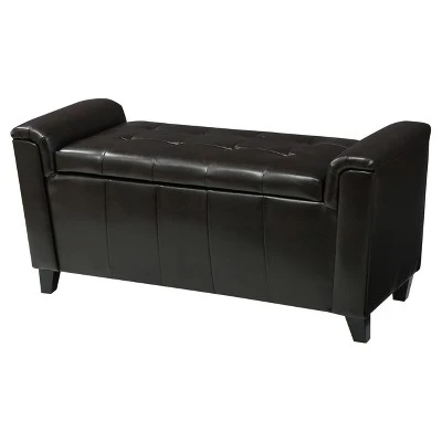 Store all of the extra remotes, controllers, and board games in the Christopher Knight Home Alden Armed Storage Bench. Available in select colors, this stylish ottoman will look good against any wall or right in front of your bed, and will hold all of those items you don’t really want to put too far away, but you also don’t want to always look at as they clutter your table. Say NO to clutter with the Christopher Knight Home Alden Armed Storage Bench.