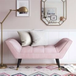 Update your space with the amazing design of the CosmoLiving Allura Tufted Bench. Home in any entryway, living room, or bedroom, this glam versatile bench is generously padded and upholstered in a blushing pink velvet fabric with a subtle sheen, giving life to any room. Featuring slightly angled, solid wood cone legs with an espresso finish and gold-finished caps, the Allura unapologetically slays the décor game. The CosmoLiving Allura Tufted Bench is a fashionable and functional accent for any modern household.