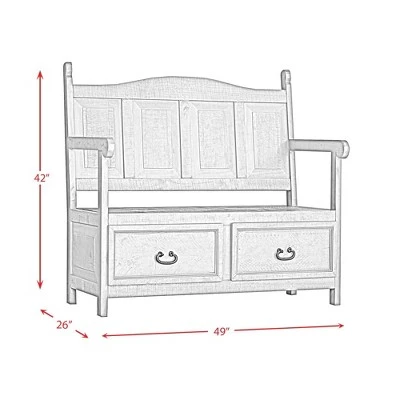 The Picket House Furnishings Archer Storage Bench is going to look great in your home! No matter where you decided to place this stunning piece, entry way, mudroom or even the kitchen it’s going to turn some heads. This accent bench comes with two spacious drawers, allowing you to easily store away any belongings. The unique, distressed finish gives this piece that ideal rustic, farmhouse look that you crave. This bench is made of solid, Brazilian pine and will age naturally over time; making it the perfect piece to pass down generation to generation.