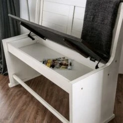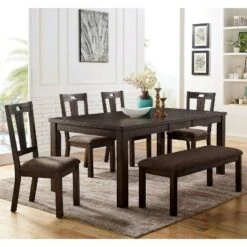 Offer comfortable seating for guests and add a sophisticated look for your dining room with this dining bench with a dark cherry finish. The faux leather upholstery on the dining bench features a foam fill for added comfort. Features like semi-firm cushion are a sure way to have long conversations around the table or any area for hours.