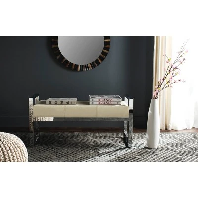 The smooth PU leather and chrome finish of this bench pay homage to the pioneers of French modernism. An elegant example of form and function, its sleek geometry makes it a stunning focal point in any room. The simple but elegant design makes this modern ottoman an easy to style piece. The sturdy build of this ottoman can support up to five hundred and fifty lbs. The Slade bench is the perfect addition for Contemporary, Glam, Modern, or Transitional style interiors.