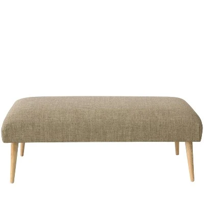 Displayed in an entryway or at the foot of your bed, the beauty of this Bench from Skyline Furniture is in its stylish versatility. Handcrafted in a variety of smooth, comfortable upholstery fabrics, it’s generously cushioned for a soft seating experience and finished with cone legs for a touch of chic detail.