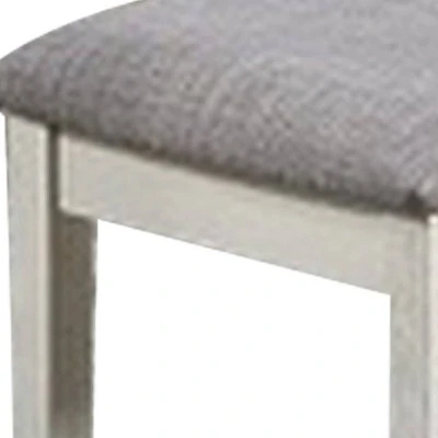Bless your home with transitional style by bringing in this beautiful and elegant bench. Constructed from solid wood in the hue of gray, it incorporates a fabric upholstered seat that grants comfort throughout the day. It is supported by chamfered legs, providing stability and durability.