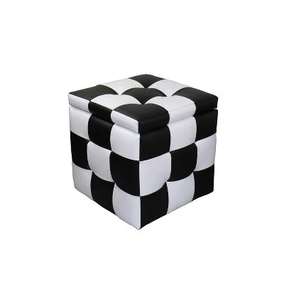 Add a touch of color and excitement to any reoon with this color block checkered ottoman. This ultra soft ottoman features an additional seating for extra entertainment. The seat flap is designed for easy opening and tight closing. Some assembly required. Available in black/white and multi-color styles.