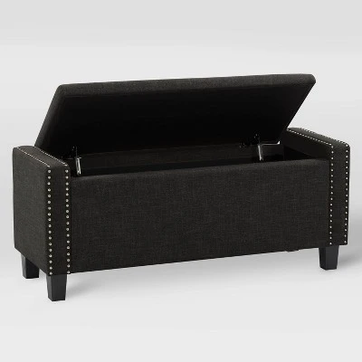 - Features: Padded Seat, Nailhead Trim, Storage, Hinged Lid