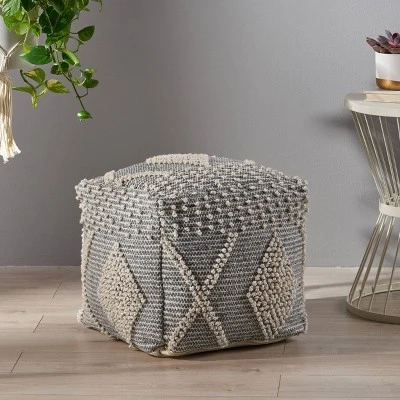 HANDCRAFTED BOHO DESIGN: Our handcrafted poufs are expertly designed and made using a centuries-old method. Any natural variations are not product flaws, but rather, will ensure that your purchase is of a truly one-of-a-kind product. With a tufted geometric design in ivory and gray, this lovely pouf is a perfect accessory for any home.
