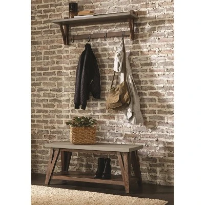Alaterre Furniture’s Brookside Entryway Bench decorates your living space with this new innovative construction. Modern, industrial concrete coated table top with solid wood base and shelf will offer a fresh new look to your living room. We see this collection in a modern city loft or a transitional living room that needs just a pop of updated style. Coordinates with the Brookside Collection that includes end tables, coffee tables, console/media tables, dining/entryway bench, stool and entryway coat hook.