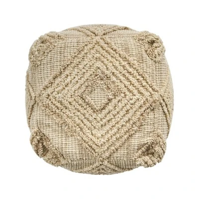 Enliven your room with a simple accessory that provides both style and comfort. Featuring a concentric diamond design, our pouf offers your indoor space an uplifting atmosphere with a finishing hand-crafted touch. Whether this is used as a footrest, casual seating, a side table, or purely for decorative purposes this piece can be used in a multitude of ways. Seamlessly blending into any arrangement with its understated design, this pouf is not only one-of-a-kind but is also resilient, making this the perfect indoor accessory.