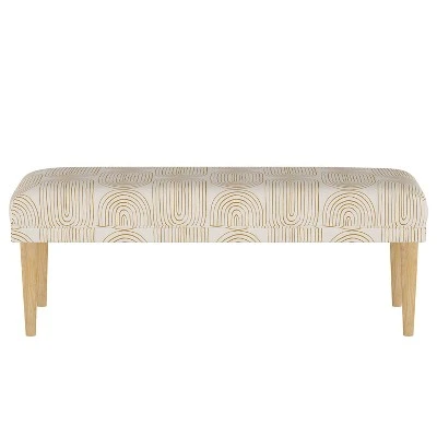 Add extra seating in your home with this Mustard Oblong Burnham Bench from Project 62™. This upholstered bench makes a great seating option in your entryway, living room or anywhere else in your home. It showcases a mustard oblong pattern on the cream cotton fabric for a touch of modern design, and this rectangular bench is topped with a soft padded cushion for comfortable lounging. Plus, it is supported on a solid wood frame with tapered legs for sturdy structure and foundation.