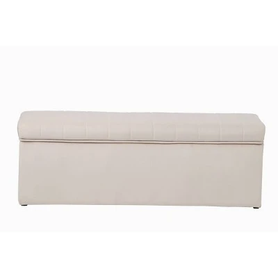 Enchance the look of any space in your house with the ACEssentials Cameron Lift Top Storage Bench. Perfect for storage at the end of your bed or in your living room, the top opens on hinges to provide an ideal spot for pillows, blankets, or extra clothes. The cream-colored velvet features a vertical line sewing pattern on its top to create channeling. The side handles make for easy moving from room to room. Measuring 47.44″ x 16.93″ x 16.34″, this bench is the perfect size to use as an ottoman footrest or for extra seating.