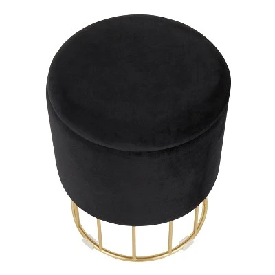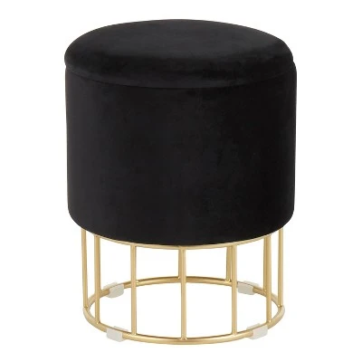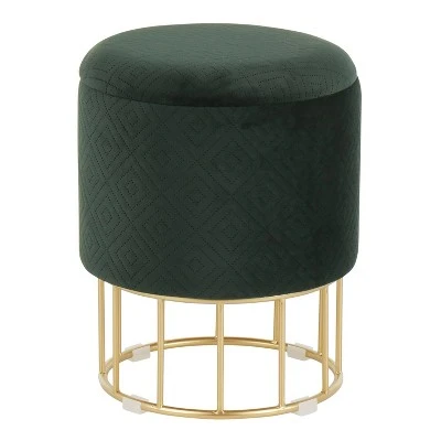 Opulent and confidently contemporary – that’s the Canary Ottoman by LumiSource. Features a captivating cage-like gold-tone metal base and an elegant upholstered top available in various modern colors, a bold touch of fancy for your seating needs. Great to use as extra seating, as a vanity seat, or even a desk chair. This beautiful ottoman will add a touch of sophisticated glamour to any decor!