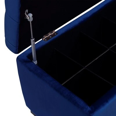 The Picket House Furnishings Carson Shoe Storage Bench will look great in numerous places! Display this vibrant pc in the entryway, bedroom or closet. This storage bench comes with a shoe divider inside, which can easily be removed if you choose to store blankets instead. The rich, velvet fabric adds instant glamour to this storage pc; while the jewel tone color makes it easy to display in any room.