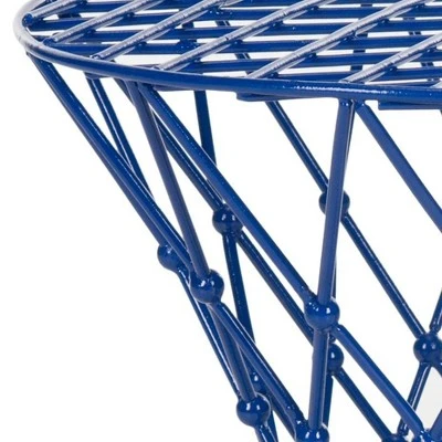 An intricate iron web lends a modern art aura to the Charlotte Stool. Charlotte’s sculptural depth is enhanced with a dark blue finish that complements any contemporary interior with charisma and movement. The clean lines allow for an airy space with ventilation. The top of the stool has tightly wound wires to help carry the weight of any of the items stored on top. This is a great addition to any Mid- Century style room and perfect to a pop of color!