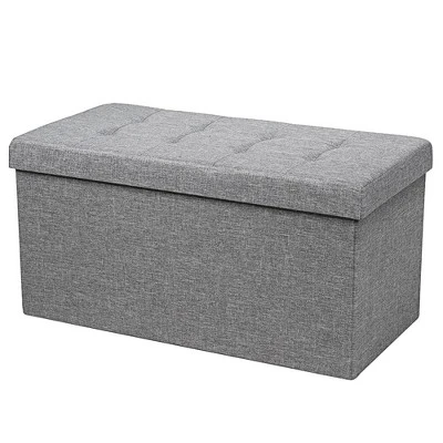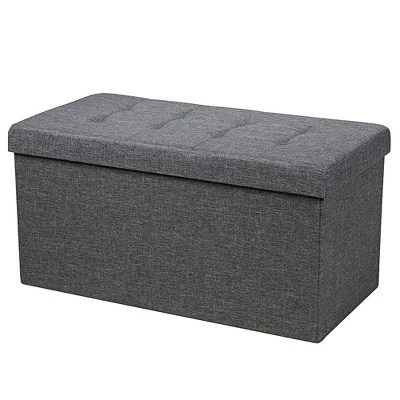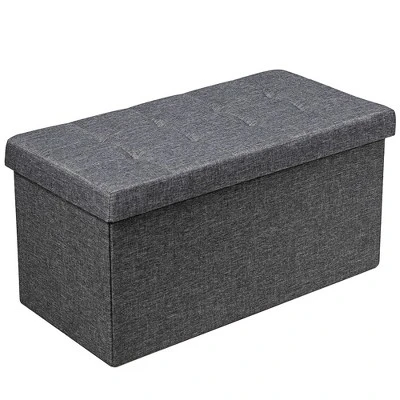 Combining elegant appearance and practical functions, our foldable storage ottoman will be your ideal choice!. The overall frame is constructed of high-quality MDF, which ensures a high load bearing capacity without easy deformation. Besides, the soft fabric covering and thick padded seat provide a great sitting experience. Roomy interior storage space with a hanging box can meet the needs of storing clothes, blankets, shoes and other daily necessities. Equipped with detailed instructions, the storage ottoman can be assembled quickly. And it can also be easily folded when not in use which takes little space. . Specification: Color: Grey Dark Grey. Material: Oxford Fabric + MDF + Sponge. Overall Dimension: 31.5 » x 16 » x 16 » (L x W x H) . Inner Dimension: 30.5 » x 14.5 » x 14 » (L x W x H) . Dimension of Hanging Box: 14 » x 8 » x 4 » (L x W x H) . Weight Capacity: 350 lbs. Net Weight: 15 lbs. Package includes: . 1 x Foldable Storage Bench. 1 x Instruction.