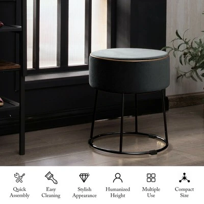 - Modern Style for Eye-Catching Decoration: This round velvet ottoman with metal tube base adds modern appeal to any rooms. Its sleek lines make this practical round footstool a decorative addition. And its simplistic and stylish appearance fits different decoration styles.
