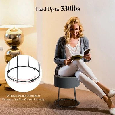 - Sturdy Construction & Durable Material: Constructed with a round metal base, this vanity stool ensures extra sturdiness and high load capacity of 330lbs. Since the skin-friendly fabric and high density foam, the stool provides you with a comfortable sitting experience.