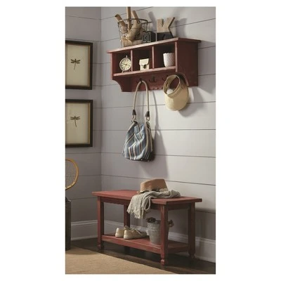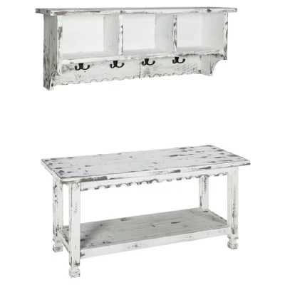 Country cottage collection will be a charming addition to your home’s decor. Country Cottage has a weathered finish; each piece is uniquely yours. With its detailed dental work, square legs and wood construction, each piece will be unique in your living space. Distressed finish coat hook and bench set offers farmhouse style and functional design. Coat hook has three cubbies; 8 sturdy hanging hooks for jackets and more.