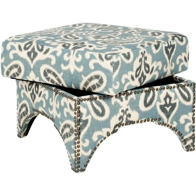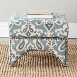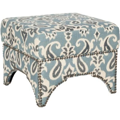 The Declan Ottoman seamlessly bridges Eastern and Western design influences with its cutout motif inspired by Moroccan architecture. Beautifully upholstered in a cornflower blue paisley cotton linen fabric and accented by brass nail head trim, Declan is as stylish as it is comfortable. Care Instructions: To prevent overall soiling, frequent vacuuming or light brushing is recommended. Cushions and pillows should be turned on a weekly basis. Down filled cushions should be brushed rather than vacuumed. Spot clean, using a mild water free solvent or dry cleaning product. Only a professional cleaner should undertake a complete overall cleaning. The use of steam or water based cleaners may cause excessive shrinking or staining.