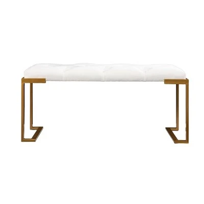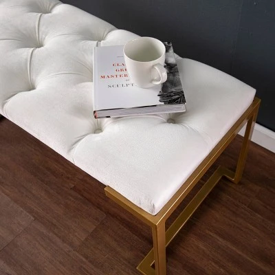 Get the best seat in the house with the Aiden Lane Easlon Upholstered Bench. Gold metal legs add a pop of color to your living space décor, while classic button-tufted upholstery blends elegantly with your modern or traditional design. Tuck this two-tone bench into your entryway for a comfortable seat where you need it most, or place beneath your living room window to create a cozy reading nook. Take a seat in style when you bring home this upholstered bench.