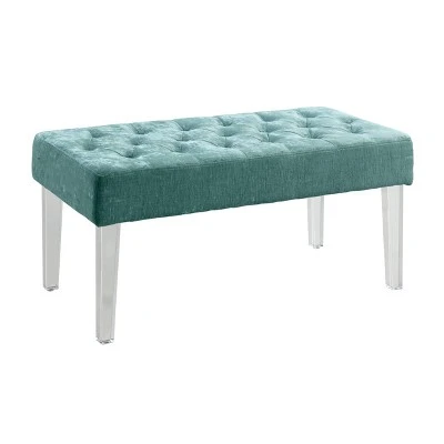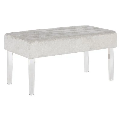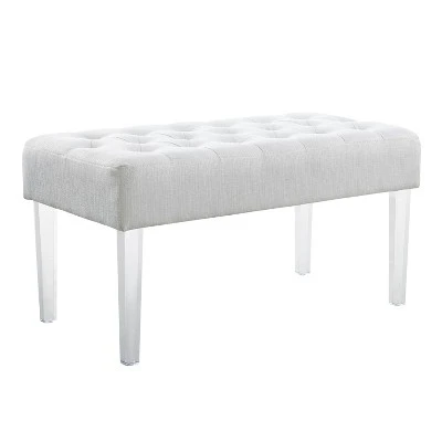 Exuding modern design and appeal, the Ella Acrylic Leg Bench is perfect for adding eye-catching style to any space. The clear acrylic legs offer a dramatic look to the simple shape. The plush seat is upholstered in a linen weave fabric and features simple tufted details. Perfect for placing in a bedroom, dressing area or living space. 18″ Seat Height