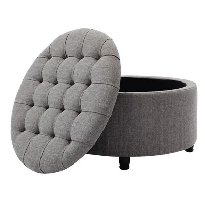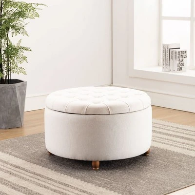 - Add glamour to your home with this modern button tufted round ottoman. These stools feature a removable top for easy storage