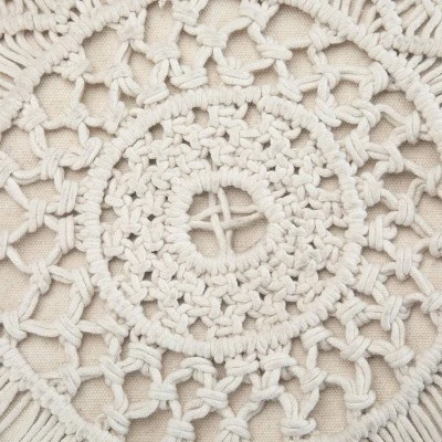 Pull the Emile Round Macrame Poufup to your favorite arm chair as a stylish footrest, or set it beside the sofa to offer an extra seat. The handwoven pouf is a versatile way to add pattern and character to your space. This light weight pouf is sturdy enough to support adults and children.