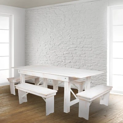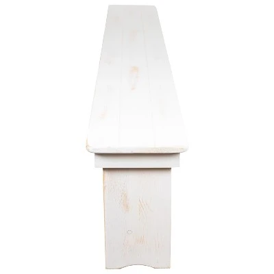 Add charm and beauty to your home with this rustic farmhouse style bench. This wood dining bench looks lovely when used in the entryway of your home or when paired with one of our solid pine farm dining tables. The white plank top bench was beautifully constructed of solid pine that comfortably seats up to 2 people. Enjoy this bench as soon as you receive it by simply unfolding the legs and pushing the pins in to secure in place while in use. This beautiful bench was designed to be used indoors but may be used outdoors for special occasions during good weather. To store your folding bench, pull the pins out and the legs securely lock underneath the seat. Whether you’re going for country, vintage or modern style this wood bench will add warmth to your space. Suitable for commercial use, this bench will be a distinct feature in restaurants. Additional Features: Folded Size: 40″W x 3.25″D x 12″H, 16 Gauge Steel Posts, Push in pins to secure legs, pull out pins to fold legs, Seats up to 2 Adults, Designed for Commercial and Residential Use
