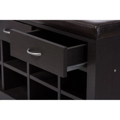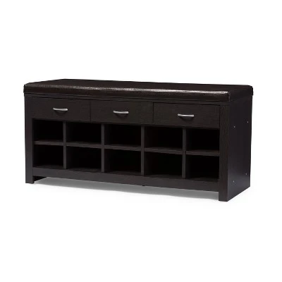 You can’t ask for a redo when it comes to first impressions. That’s why preserving the integrity of a home’s entryway is so important. But with space often at a premium, you want fashion and functionality. No need to sacrifice either one. Our Espresso Entryway Bench boasts great looks and strong storage capabilities. Underneath its foam-padded, faux-leather seat are 10 shoe-storage cubbies plus three drawers for holding such close-to-the-door essentials as keys, umbrellas and pet leashes. 41.8″W X 15.6″D X 20.1″H, Top Drawer Dimensions (3): 2.25″ high x 9.75″ wide x 13.125″ deep