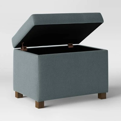 Add extra seating to any room of your home with the Essex Storage Ottoman from Threshold™. Functional and stylish, this upholstered storage ottoman features a classic rectangular silhouette that’s wrapped up in soft fabric upholstery with ample padding on the seat for extra comfort and support. Made with a solid wooden frame, this rectangular storage ottoman features a hinged top that opens up to a convenient storage compartment, giving you the perfect solution for your storage needs. Fashioned with a classic chevron pattern, this printed rectangular ottoman blends well with your contemporary-styled decor and works as a great decorative accent to add to your space. Use it in the living room as a footrest and to store board games and magazines, or keep it in your entryway as a comfortable place to sit while you change your shoes.