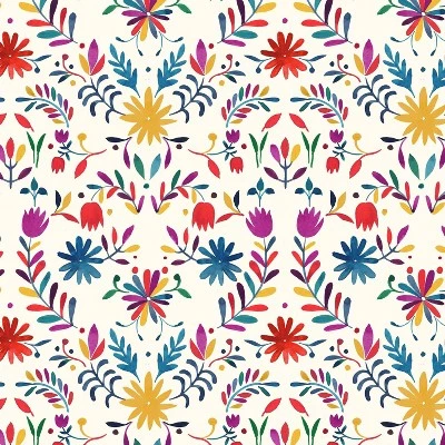 - Solid-color background with vibrant floral-inspired imagery for eclectic flair