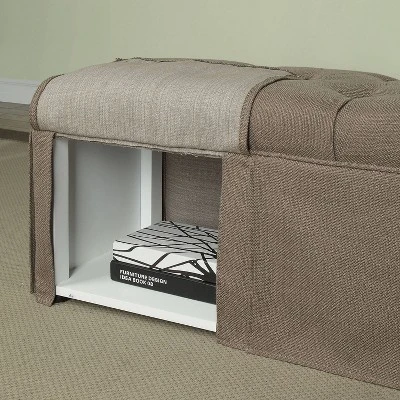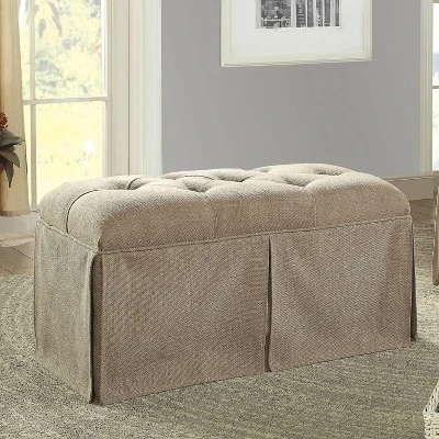 Style and function come together in the Homes: Inside + Out Furman Transitional Button-Tufted Fabric Storage Ottoman from Homes: Inside + Out. Covered in textured fabric in a beautifully neutral beige shade, this rectangle ottoman features fabric panels draped from the top that can be lifted to reveal storage underneath. Keep your living space neat and tidy by storing extra blankets and pillows inside this ottoman when you’re not using them. Holds up to 175lbs.