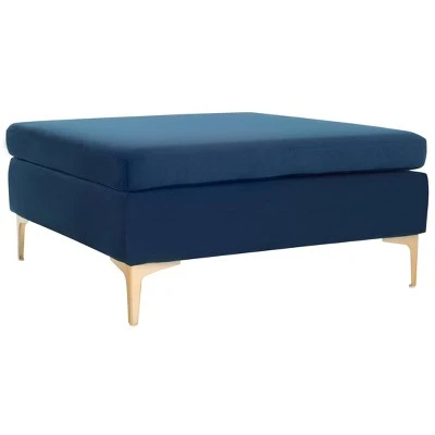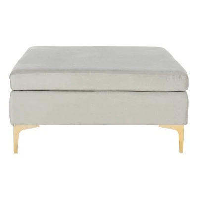 Add warmth and a bold pop of color to any living room with this contemporary square bench. Soft and luxurious, its plush gray velvet upholstery maintains clean minimalist lines for sleek style. Designers love the radiant brass finish on its metal legs.