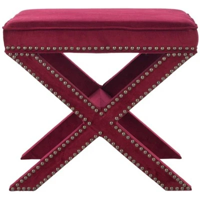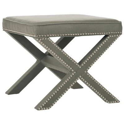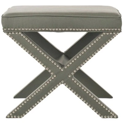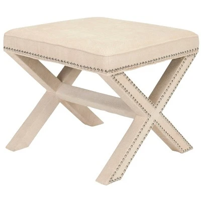 Whether you call it an X-bench or cross-bench, the Palmer ottoman offers a designer look with all the trimmings. Its classic form complements myriad design styles and custom look comes from plush taupe linen upholstery with nail head trim. Palmer is ideal in pairs at the foot of the bed or in the living room or alone as seating in a master bath.
